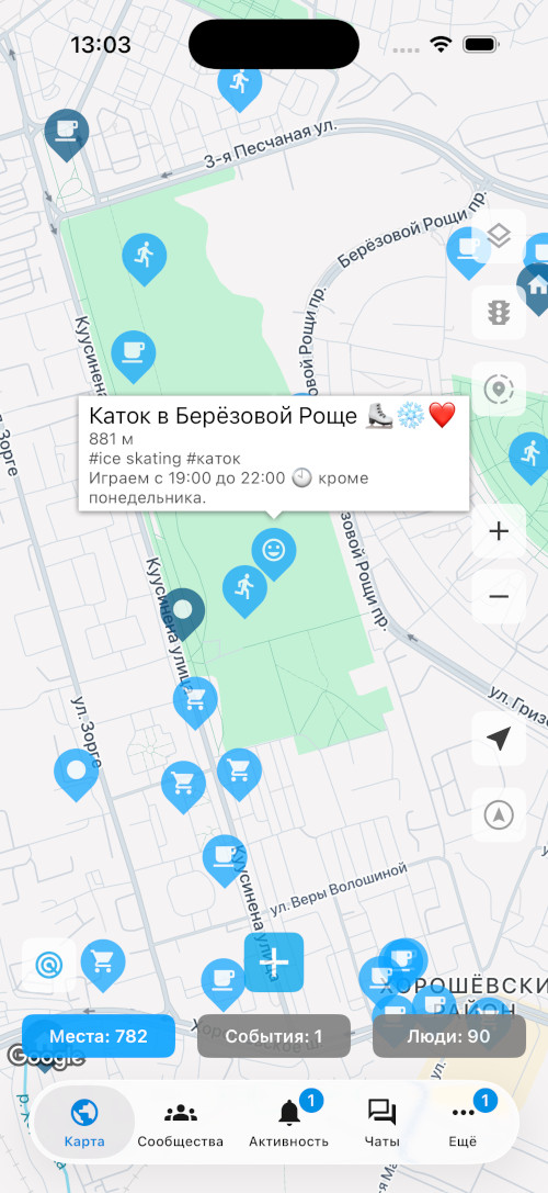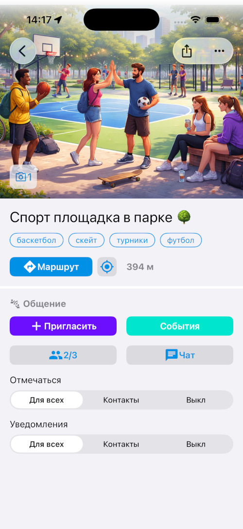 track_changes Публичные места показывают, кто сейчас на катке или футбольном поле